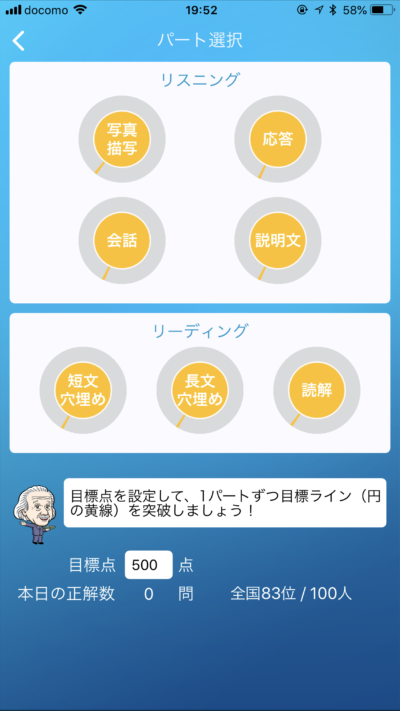 デイリー挑戦モード や 実力判定モード で現在の実力を知り、パート別演習 で自分の弱いところを鍛えていくというのは、おすすめする流れ。