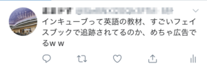(インキューブって英語の教材、すごいフェイスブックで追跡されてるのか、めちゃ広告出てくるww)