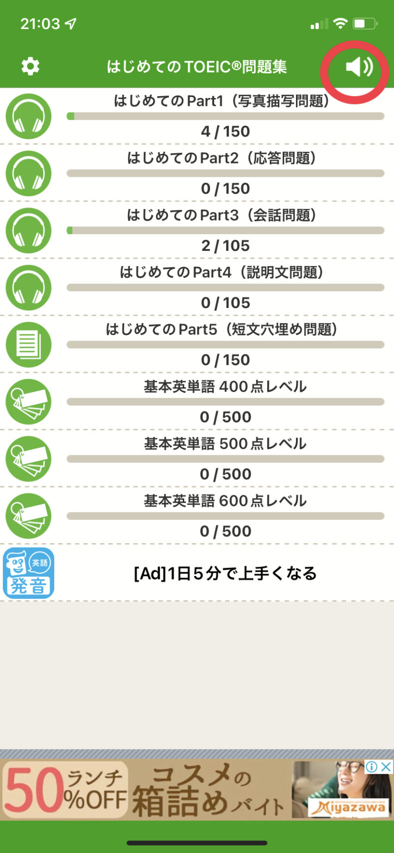 基本レベルから練習できるので、TOEIC®test対策としては、かなりオススメのアプリです。