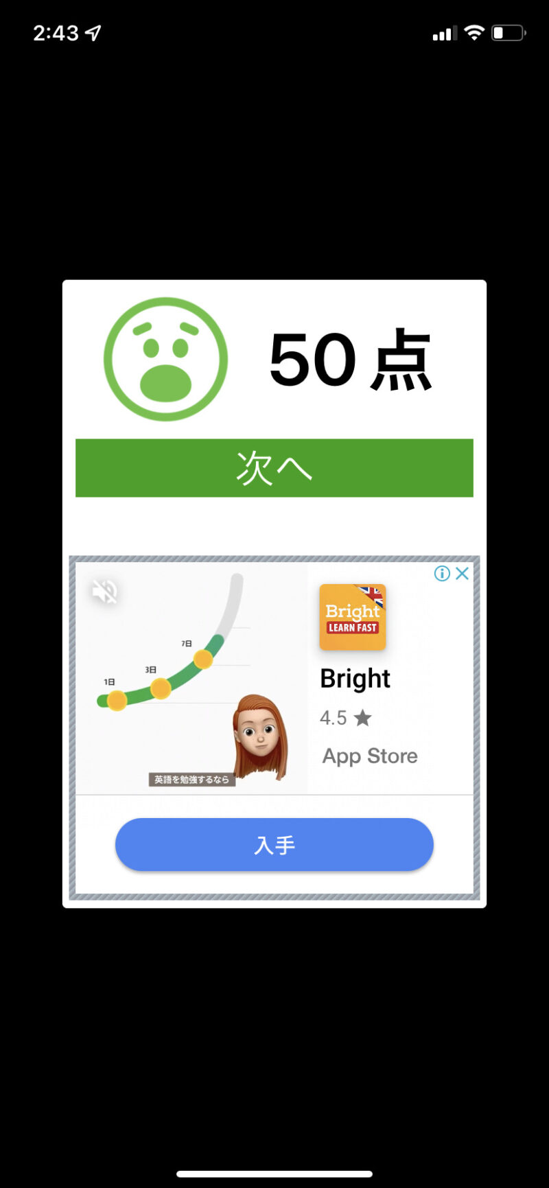 アプリを立ち上げた瞬間に、下のような広告が現れます。