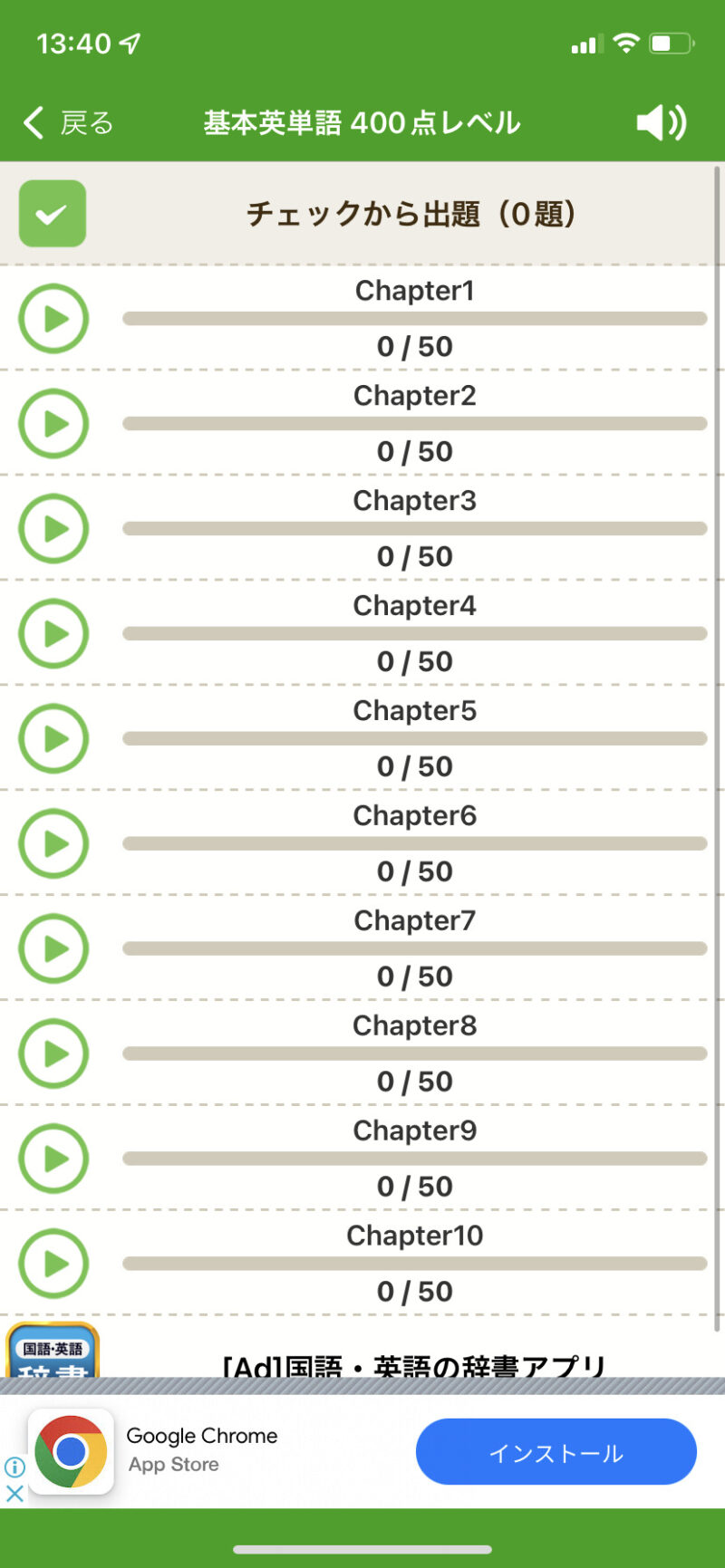各レベルともChapter10まであり、それぞれのChapterに掲載されている英単語は、50個。