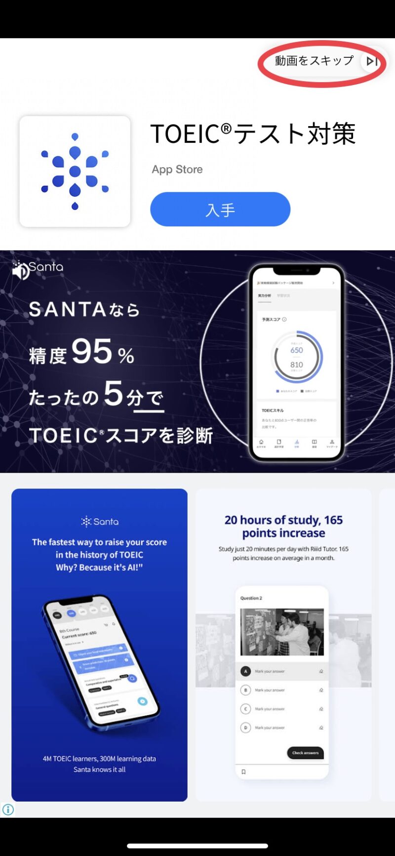 右上に「動画をスキップ」という表示が出たら、どんどんスキップしていきましょう。
