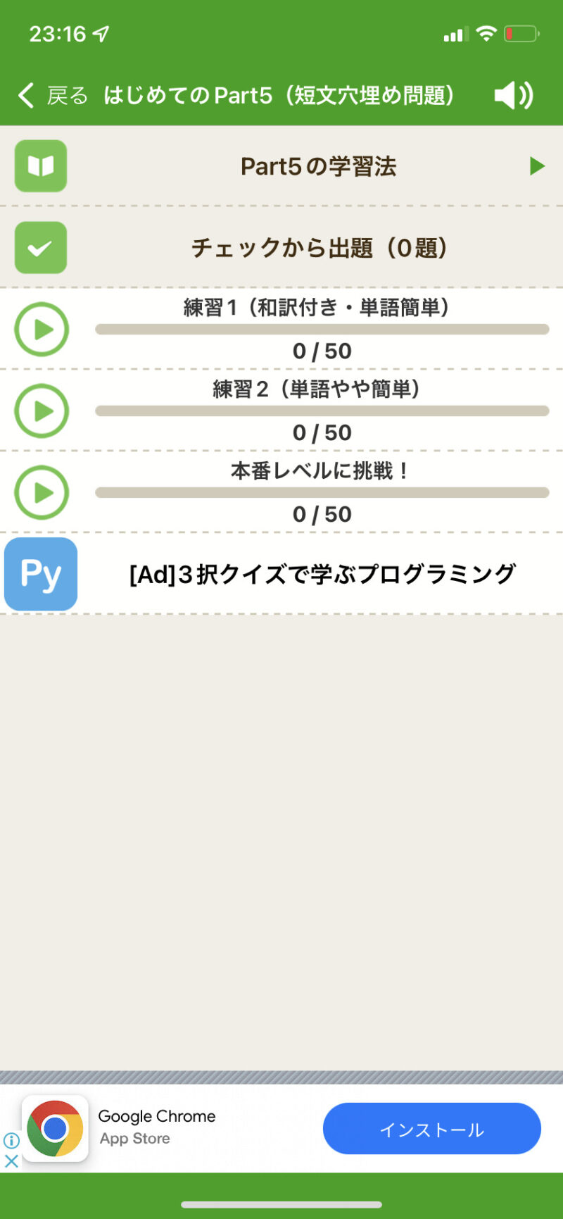 広告は頻繁に表示される ものの、無料2,160問 も練習できるのは、非常にありがたいです。