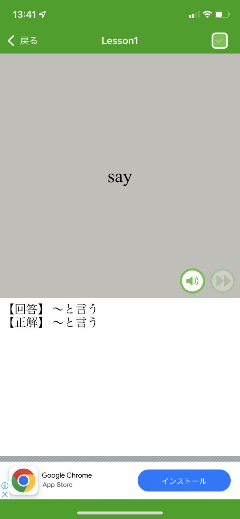 スピーカーボタンをタップすれば、発音も聞くことができますよ♪