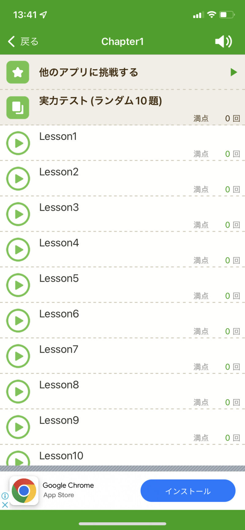 Chapter1を開くと、Lesson1からLesson10までが表示されます。