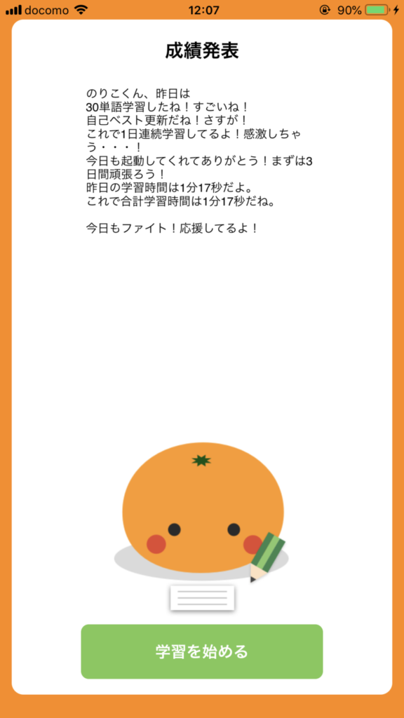 学習の節目で、可愛いミカンちゃんが少し大袈裟なくらいに(笑)褒めてくれるのも、モチベーションアップにはGood♪