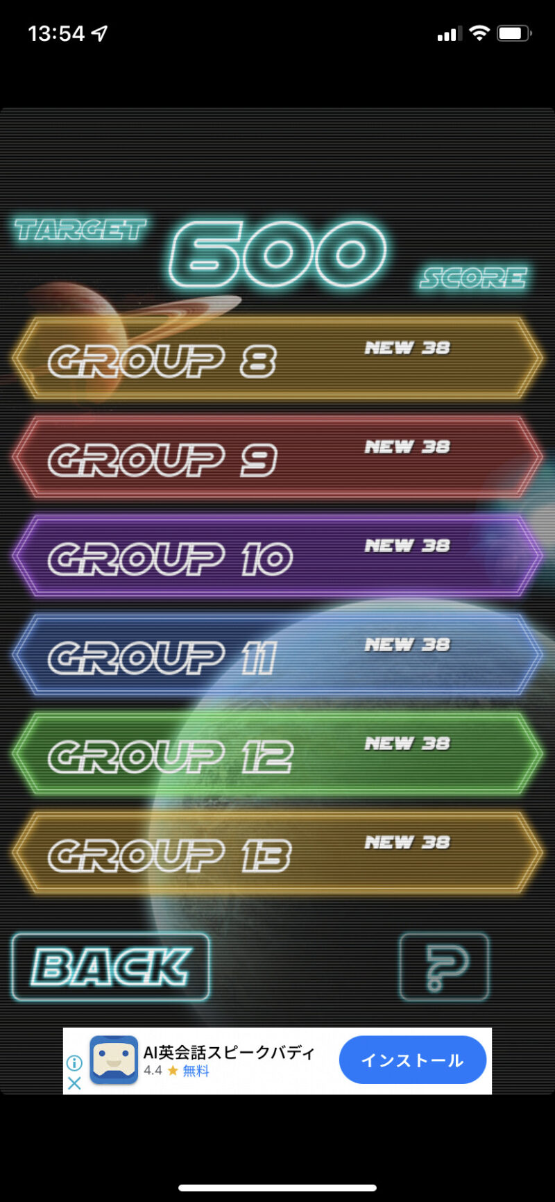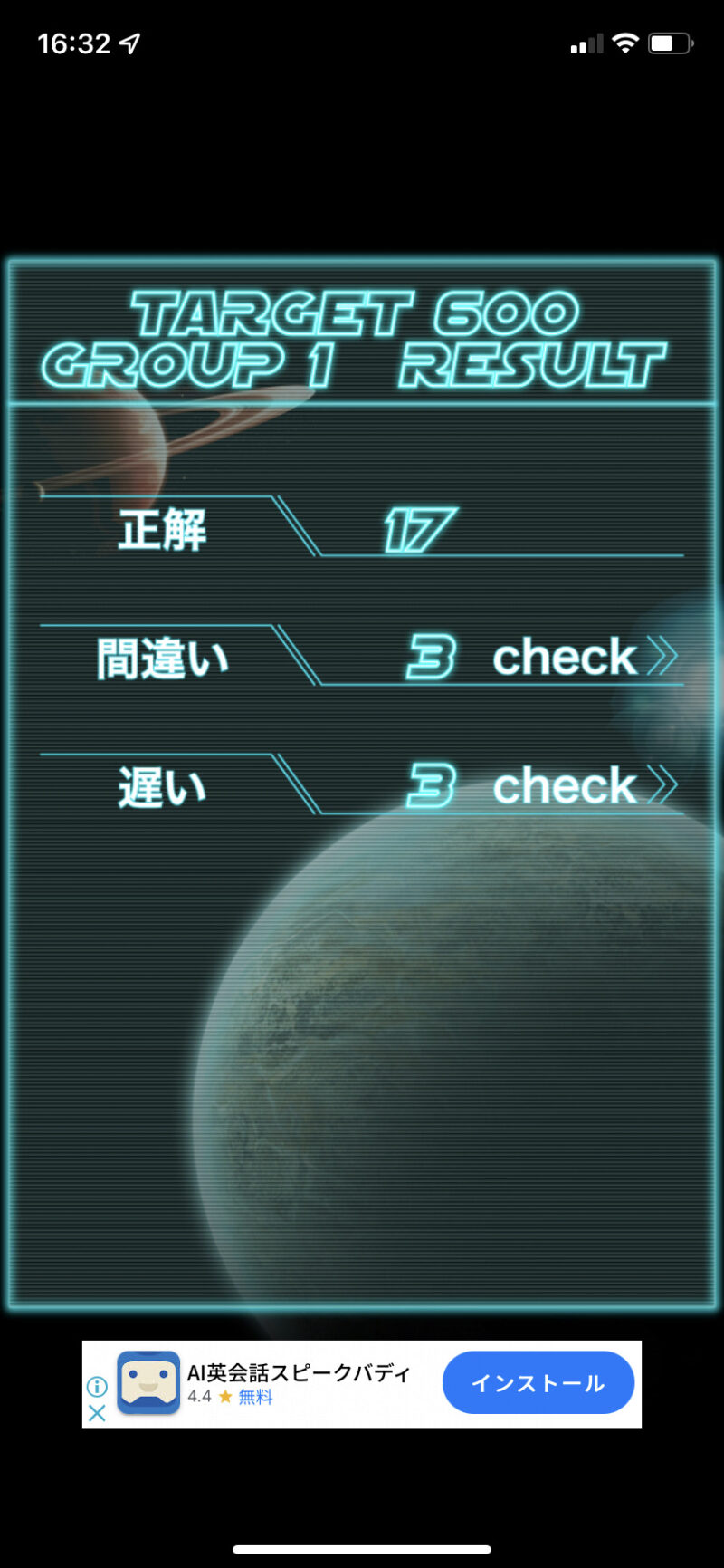 一見すると楽しいゲームですが、無意識に英単語に集中できるので、英単語の確認にはちょうどよいアプリでしょう。